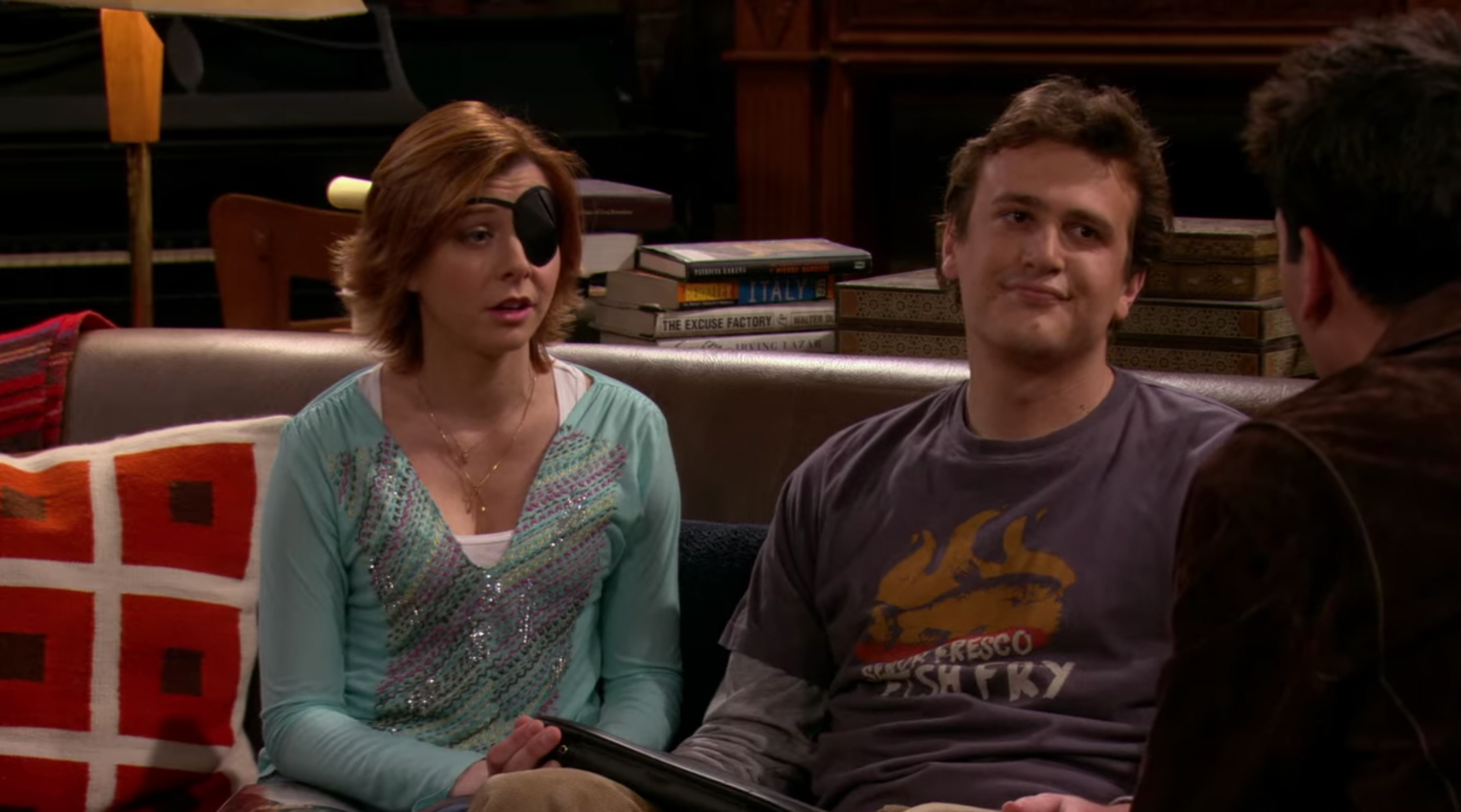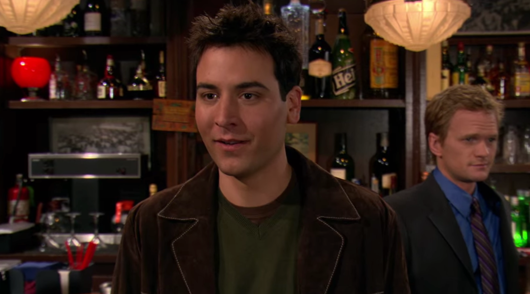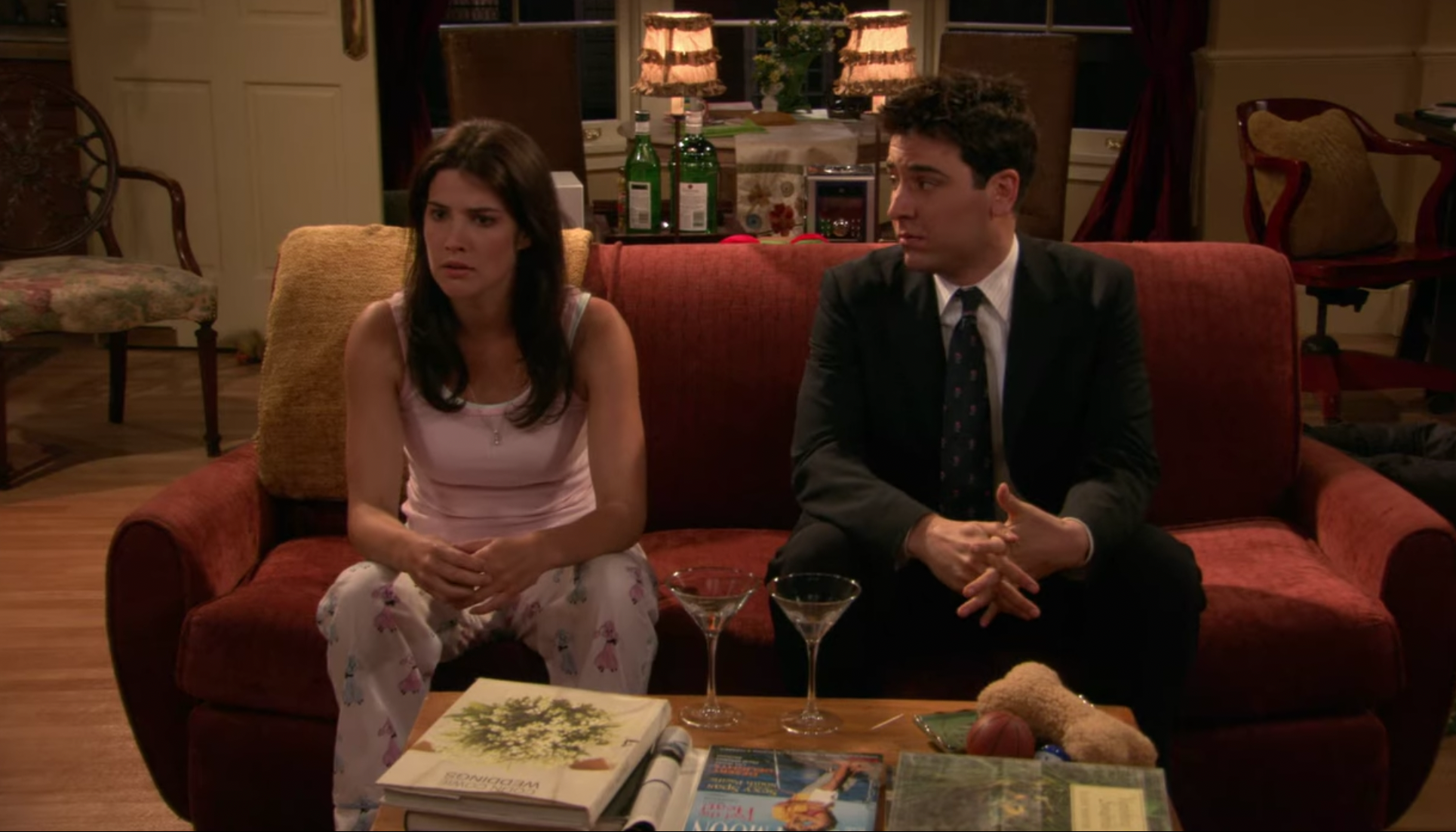 마침 테드를 발견한 로빈, 새벽 1시에 수트까지 챙겨 입고 무슨 일이냐고 묻는 그녀. 나한테 준다던 올리브 가지러 왔다고 한다. 테드의 농담을 가볍게 받아주는 로빈. 두 사람은 분위기가 한참 좋다. 그 와중에 테드가 망친 한마디 '당신을 사랑해요' 만난 지 채 24시간도 지나지 않아서 다짜고짜 부담스럽게 사랑 고백이라니.. 나중에 이 말을 들은 친구들도 놀라 뒤집어졌다는..