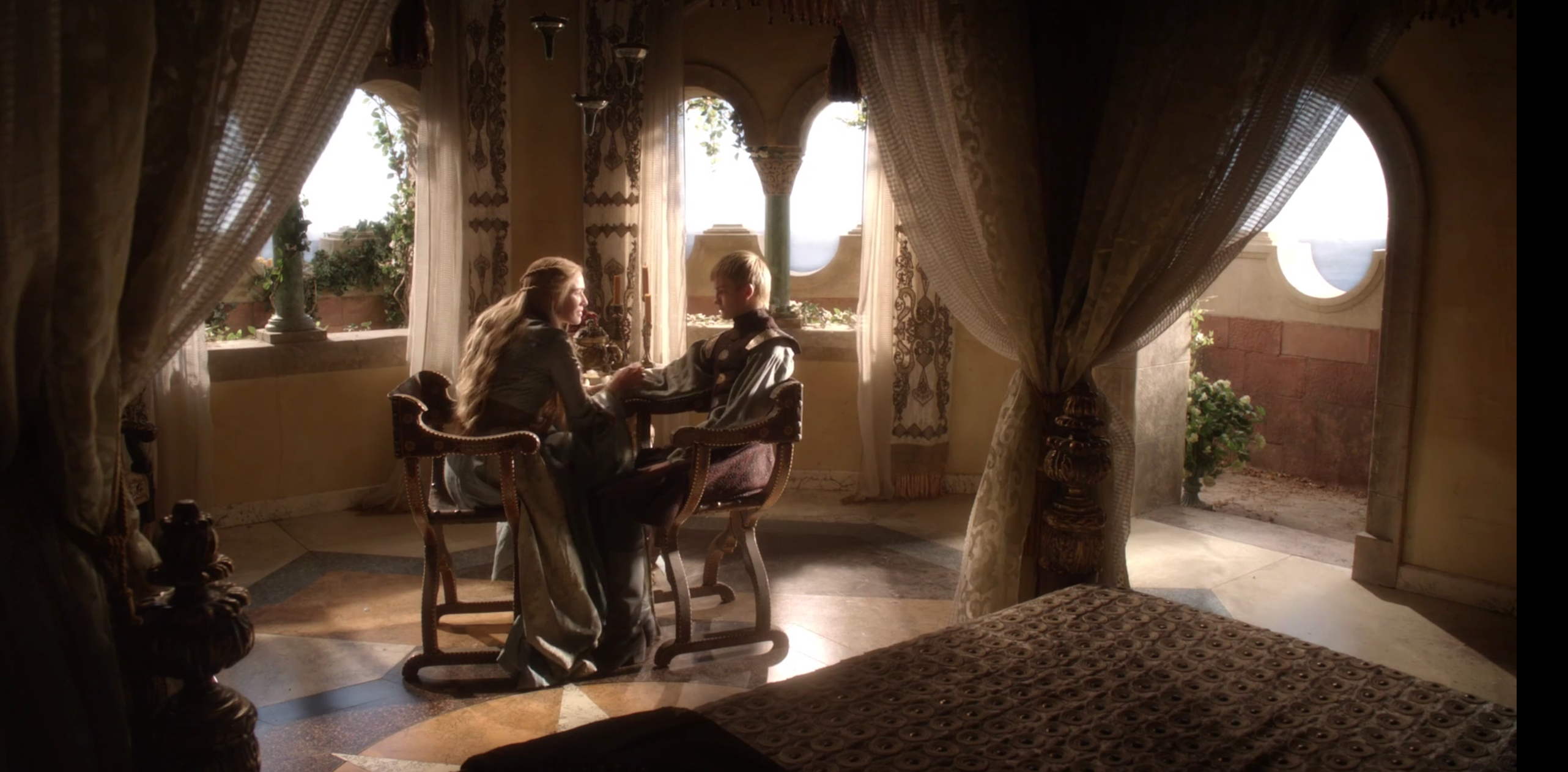 한편 왕비는 왕자 조프리에게 산사와 혼인하되 잘해주도록 타이르고, 자신의 아들이 창녀들과 놀든 귀족출신의 여자들과 놀든 하고 싶은 대로 하고 살되, 앞으로 왕자와 공주만 잘 ‘생산’해주면 된다는 발언을 내뱉고 있다. 조프리는 스타크 가문이 왕의 권위를 우습게 본다며 온갖 열이 받아 있는 상태이다. 윈터펠 사람들이 (스타크 가문) 왕의 직속이 아닌 스타크 전속 군대가 있다는 걸 탐탁치 않게 여기는 것도 한 몫하는 것 같다.