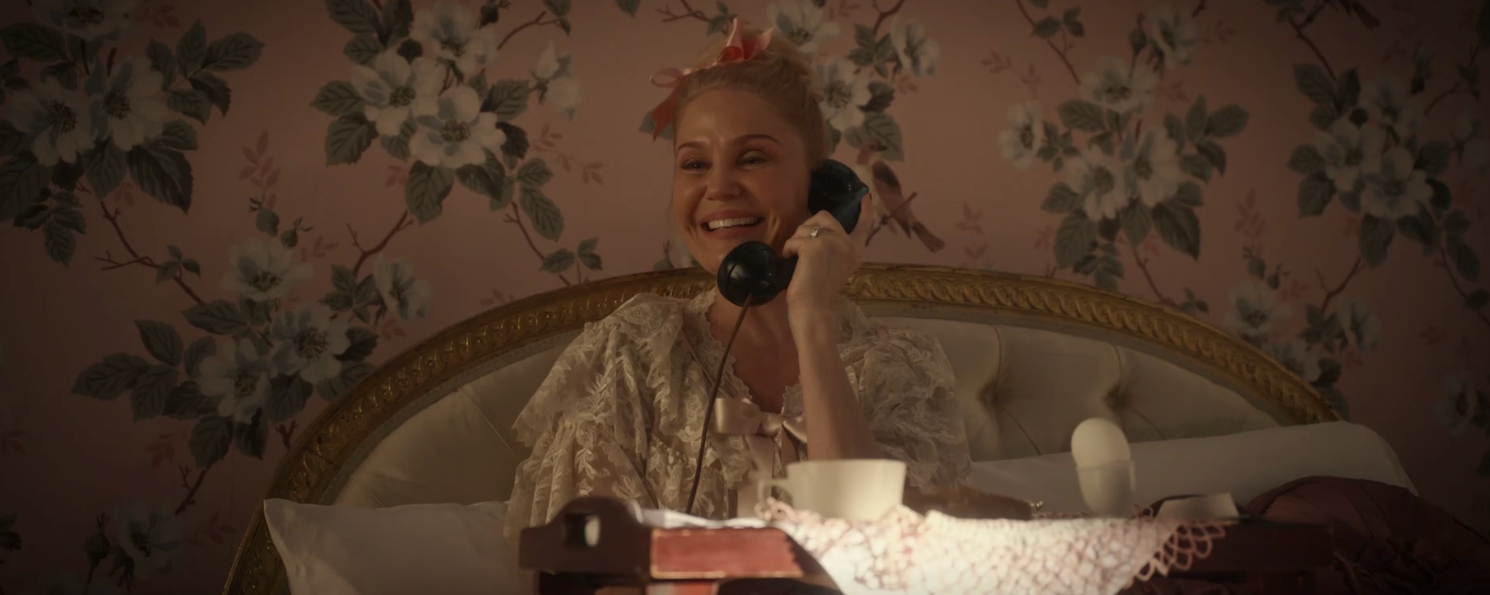 와이 우먼 킬 시즌2 4화의 시작은 알마가 이른 아침 울리는 전화벨 소리에 눈을 뜨는 장면에서부터 시작된다. 보통 9시 이전의 전화는 좋은 소식일리 없다는 걸 주부들은 본능적으로 캐치하는 경우가 대 다수..! 전화의 주인공은 정원 클럽의 멤버 그레이스였다. 그레이스 왈 오늘 오후 3시에 정원 클럽 여자들과 알마의 집을 기습 방문할 것이라며 미리 소스를 제공해준다. 이유는? 바로 정원 클럽 멤버에 어우러지는 환경에 살고 있는 사람인지 알마를 체크하기 위한 것...!