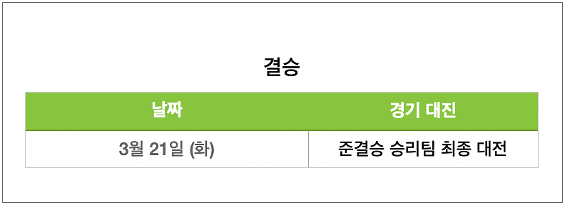 토너먼트 경기를 마치고 세미파이널 승자가 된 2개의 국가가 치르는 결승전은 3월 21일 화요일 펼쳐질 예정이며, 준결승을 포함한 결승전은 모두 미국 마이애미 경기장에서 치르게 됩니다.
